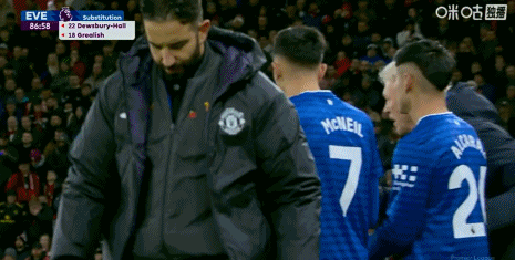 第88分钟,埃弗顿换人,格拉利什和霍尔被换下